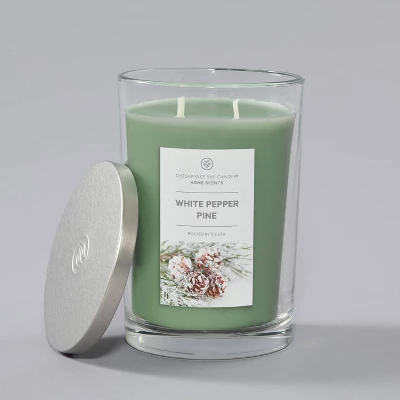 Prep your home for the festive season with the White Pepper Pine Jar Candle from Home Scents by Chesapeake Bay Candle. This scented jar candle features a medley of winter-inspired fragrances that set the right tone for family get-togethers and casual gatherings.Poured in a clear glass container with a metal lid, this scented jar candle looks stunning placed on your mantel, coffee table or end table and fills your abode with an alluring radiance and merry scents of the season.
