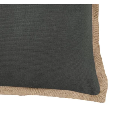 Soft natural jute, dyed, is the fabric of this basic solid pillow. A natural jute flange is added to the perimeter. The back is the same as the front solid and features a hidden zipper closure. This large-scale solid is perfect for over scaled furniture, layered with other coordinates, or alone as a statement solid.