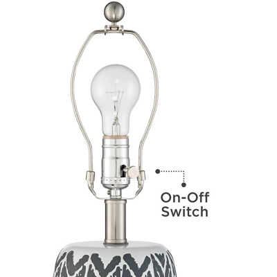 - White and gray pattern on the lamp bases. Ceramic construction. Satin nickel finish accents and bottom bases.