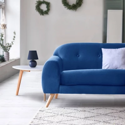 A petite table lamp made primarily of ceramic with its base in the shape of a round orb sits beneath a matching colored tapered fabric shade for an overall effortlessly styled lamp suited for both your décor and lighting needs. A number of color options are available in this style, to compliment your decor just right.