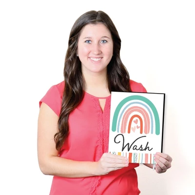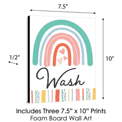 Hello Rainbow Kids Bathroom Wall Art Set INCLUDES 3 ready-to-hang Boho Rainbow rules themed panels and non-marking wall mounts for easy hanging. Boho Rainbow themed Wash, Brush, Flush artwork is perfect for any kids’ bathroom. Hello Rainbow bathroom decor for kids SIZE each 10 inches high x 7.5 inches wide x .5 inches thick. Boho Rainbow lightweight art prints will arrive ready to use – no frame needed. The black edge gives each print a modern, finished look. EASY TO HANG: Simply attach a non-marking wall mount (included) to each corner of a Hello Rainbow bathroom art panel and press to hang in desired location. Wall mounts are repositionable, so you can redesign your artwork display at any time. PREMIUM BATHROOM DECOR: 3-piece Hello Rainbow Bathroom Rules Wall Art Set is professionally printed on thick material with a black edge. You will not need to frame this set of Wash, Brush, Flush Boho Rainbow kids’ bathroom decor. Each standout print is ready to hang and will add a contemporary touch to any room. MADE IN THE USA: Hello Rainbow Kids Bathroom Rules Wall Art – Wash, Brush, Flush is designed and manufactured at our Wisconsin facility using materials that are Made in the USA.