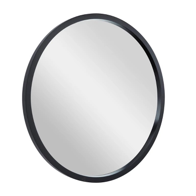 - •This contemporary round wall mirror is furnished with a black wooden frame and a reflective clear glass