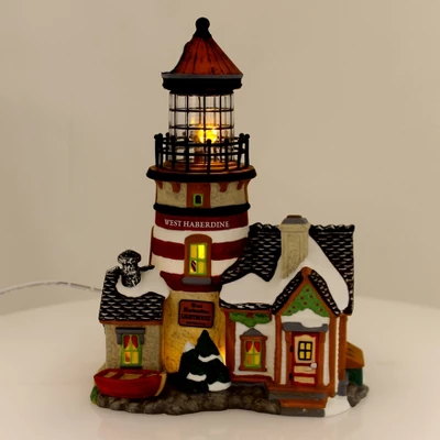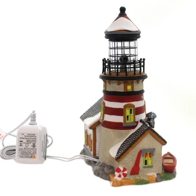 New With Box. New England Village. Animated Porcelain Building With Adapter Cord. Measures 8.0 In H X 6.25 In W X 4.0 In D.