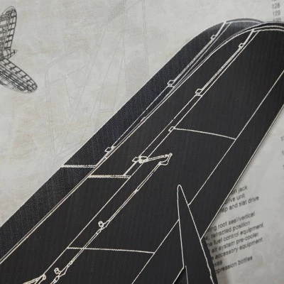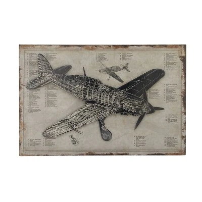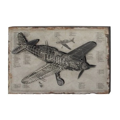 - 2D wall art features a skeletal blueprint image of a vintage aircraft and flat rusted-style border frame