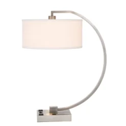 Contemporary Metal Desk Lamp With 2 Power Outlets And 1 USB Port Brushed Steel – Cal Lighting