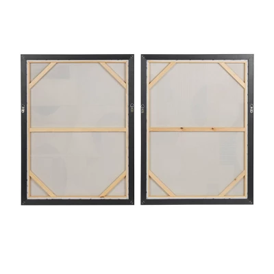 - This canvas framed art wall decor set features two rectangular framed pieces with abstract designs