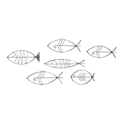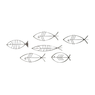 Create a balanced space in the most creative way with this expertly crafted wall decor for captivating focal point. Showcase your personality and turn your walls into an art gallery with this captivating wall decor. The metal wall accents are excellent additions in industrial and coastal themed homes. This item ships in 1 carton. Features 6 abstract metal fish designs wall décor. Can be hung vertically using the metal rings on the back; nails and screws not included. A great versatile decor for indoor or outdoor display but are not rust or weather resistant. This item ships fully assembled in one piece. Maximum weight limit is 20 lbs. This black colored wall sculptures comes as a set of 6. Industrial style.