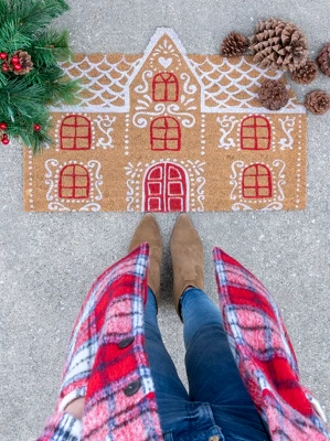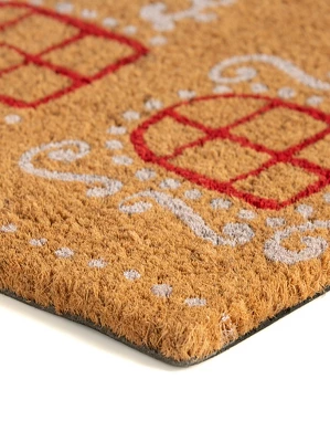 Update your holiday décor with Shiraleah’s Gingerbread house doormat. This charming doormat features a fun, happy and festive Gingerbread house and a natural background, Measuring 30” x 18”, and made from coir with vinyl backing, this doormat is the perfect way to add a little festive charm to your exterior.