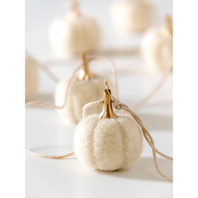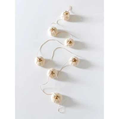 Give your home a seasonal update with this rustic felt pumpkin garland from Shiraleah. This garland includes 7 decorative small pumpkins, giving a twist to fall farmhouse décor with its posh shape, colors and texture. The pumpkins come in chic fall colors and a gold stem. Pair with other items from Shiraleah’s home collection to complete your look!