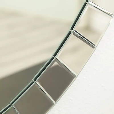Open up the look of any room in your home with the beautiful and bright Tori Round Wall Mirror from Abbyson Living. Featuring a mirrored frame that is accented with reflective rectangular panels, this decorative wall mirror serves as a stunning and functional piece of art for your home. Whether you hang it in your entryway or foyer, or center it in above your vanity, this round wall mirror will add a perfect finishing touch to your home decor.